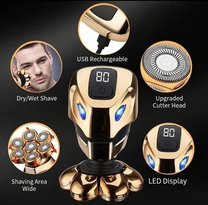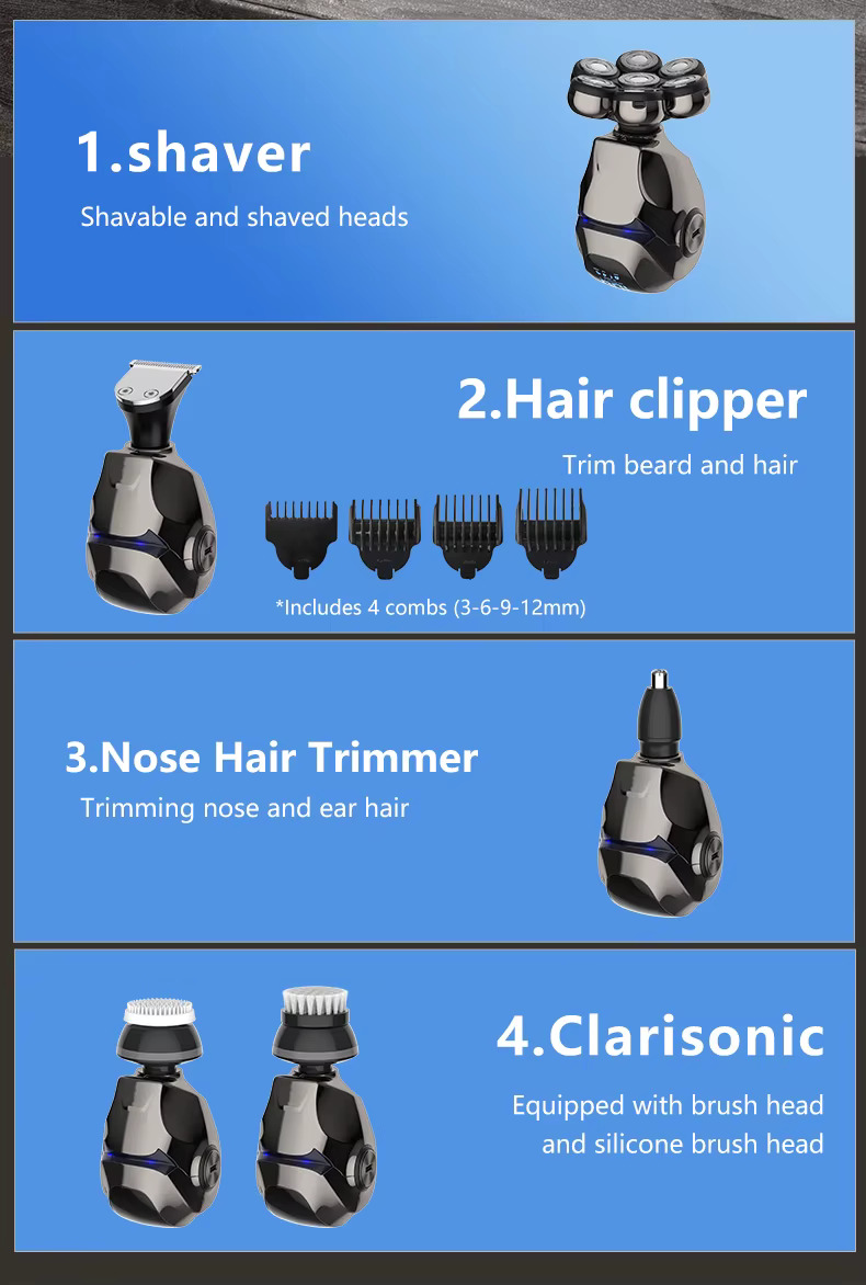 Head shaver has floating double-ring blades and triple-ring blades. Electric shaver can achieve a 360° close shave. Brings you a smoother, closer shave, providing you with a more comfortable and efficient shave.