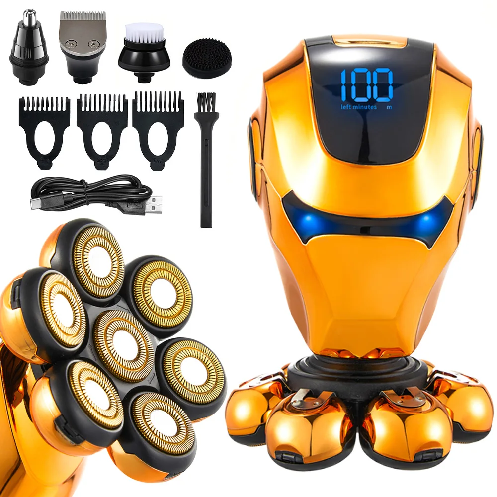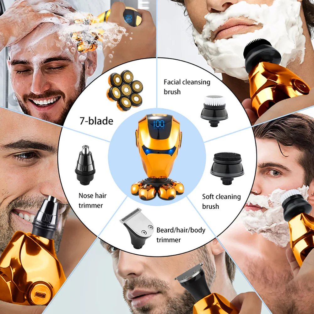 Latest Digital Wireless Shaver for Men, with Two(2) Extra Head Blade Independently 7 Cutter Floating Head Waterproof Electric Rechargeable Razor Multifunction USB Charge, Trimmer for Men with LCD Display