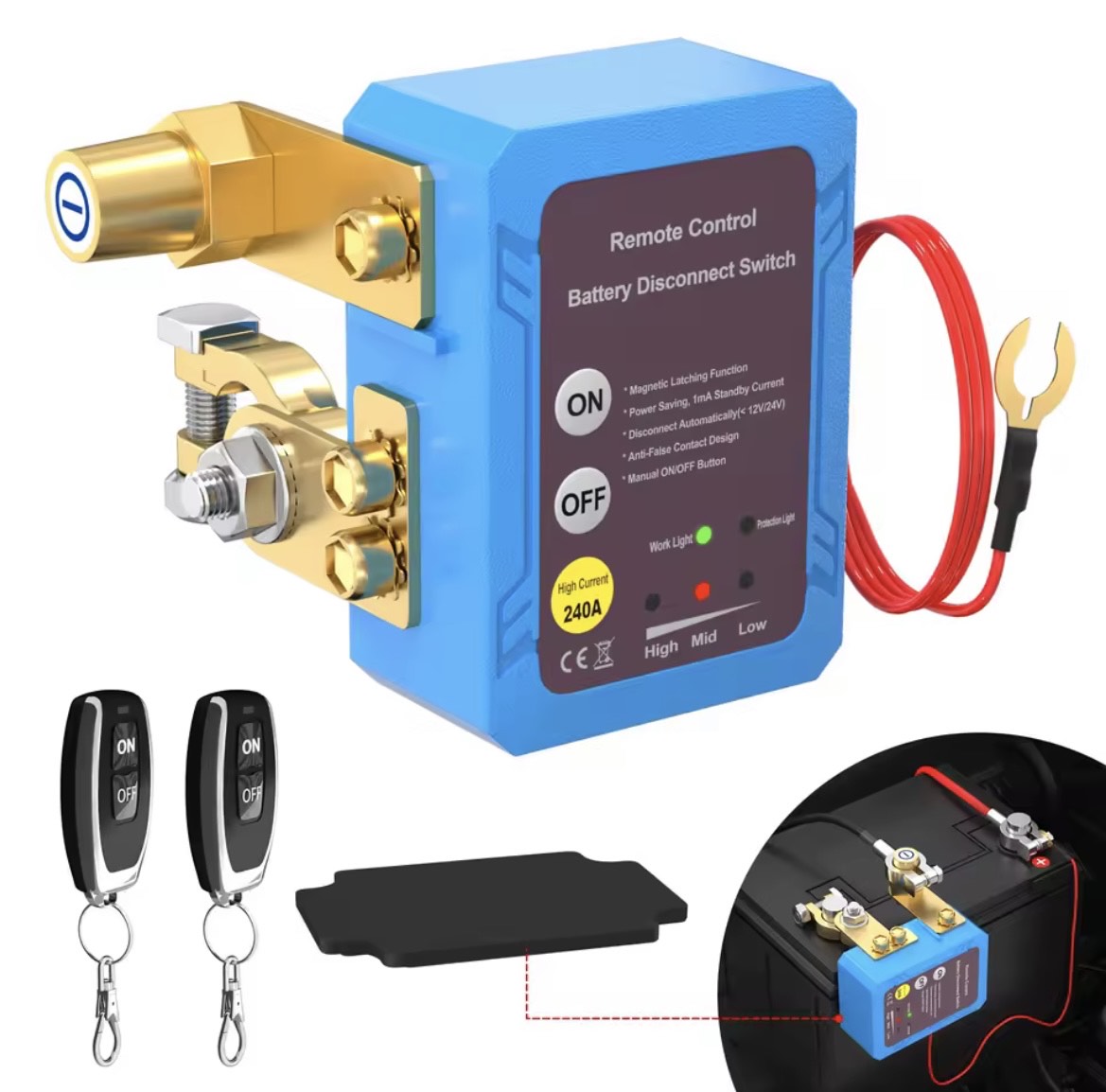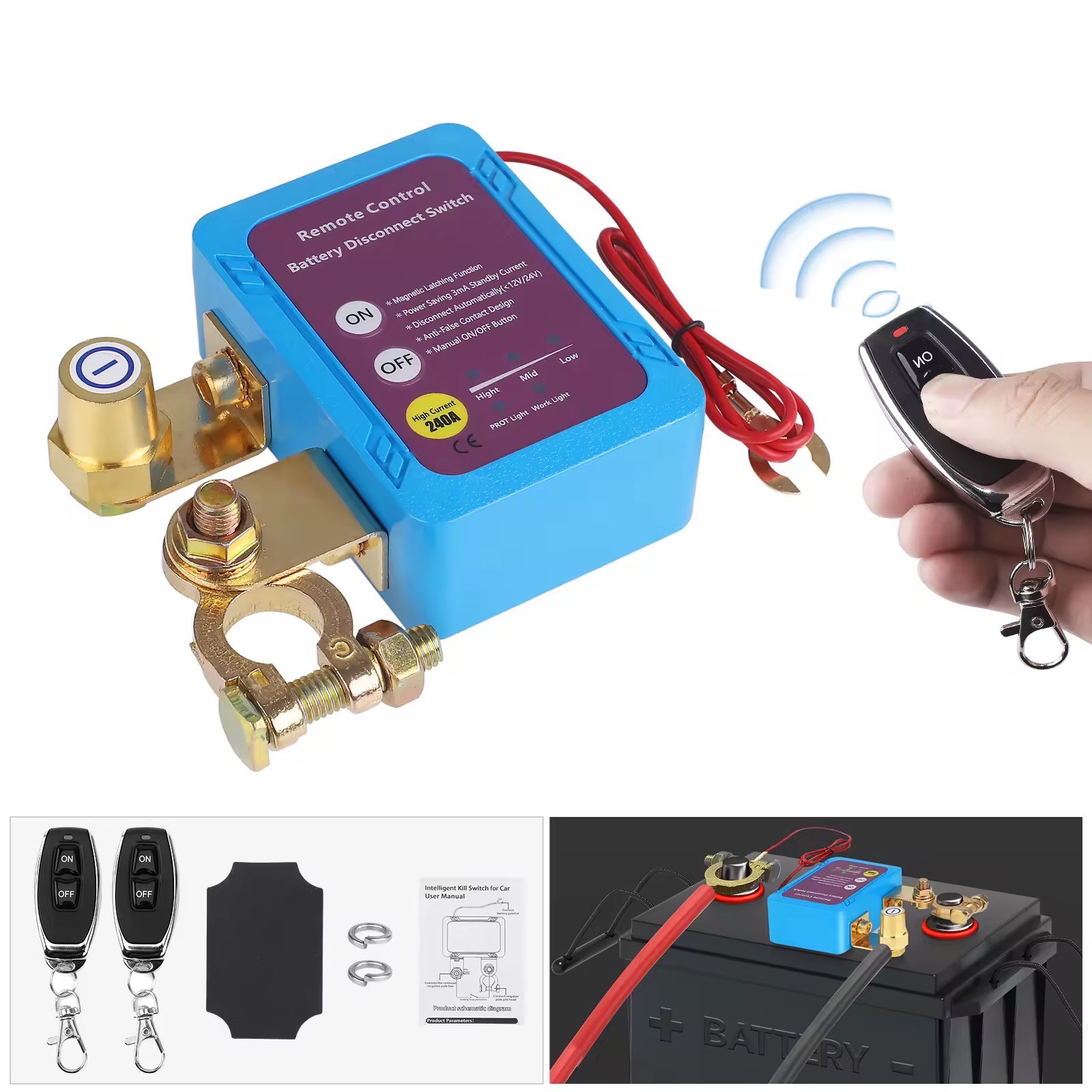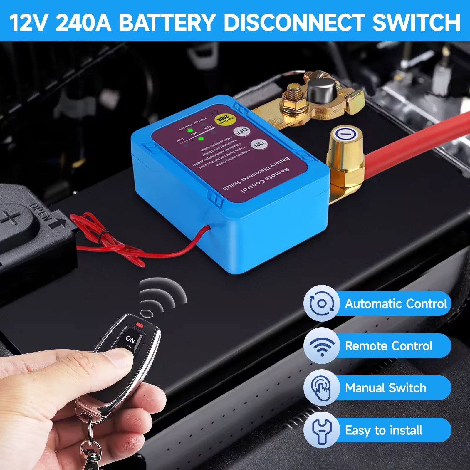 Handles up to 240A — perfect for most 12V/24V vehicles. - Magnetic Latching Function