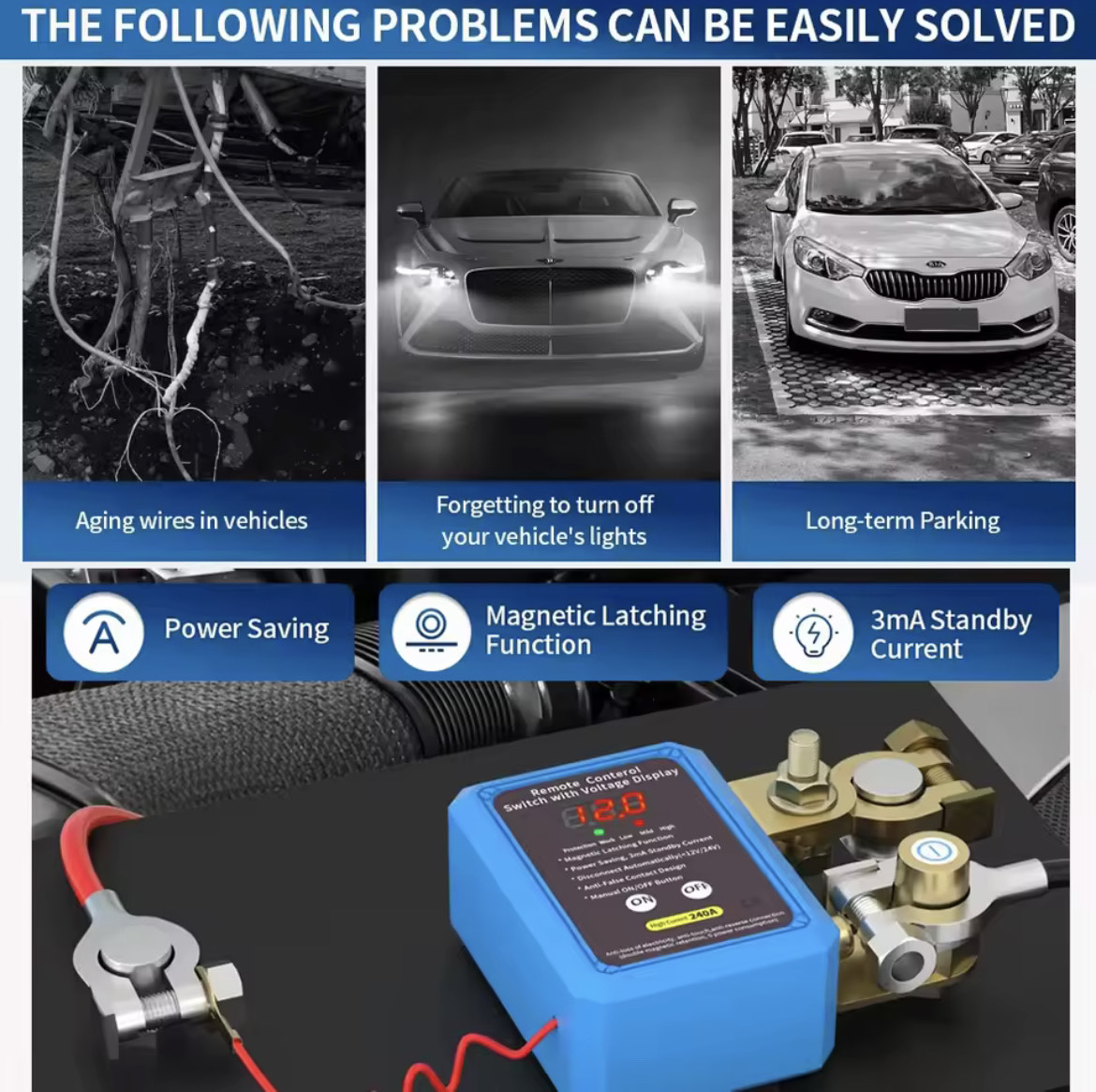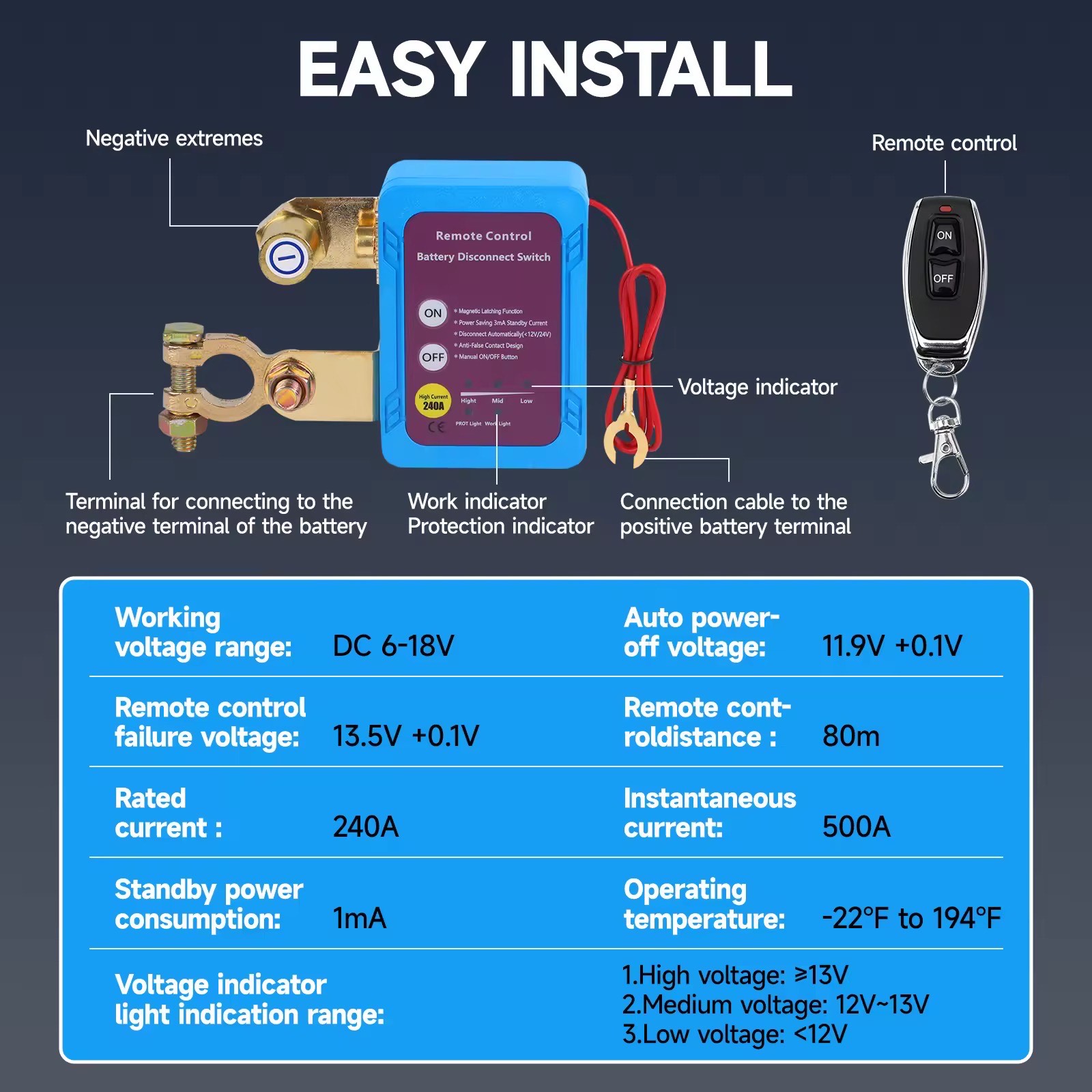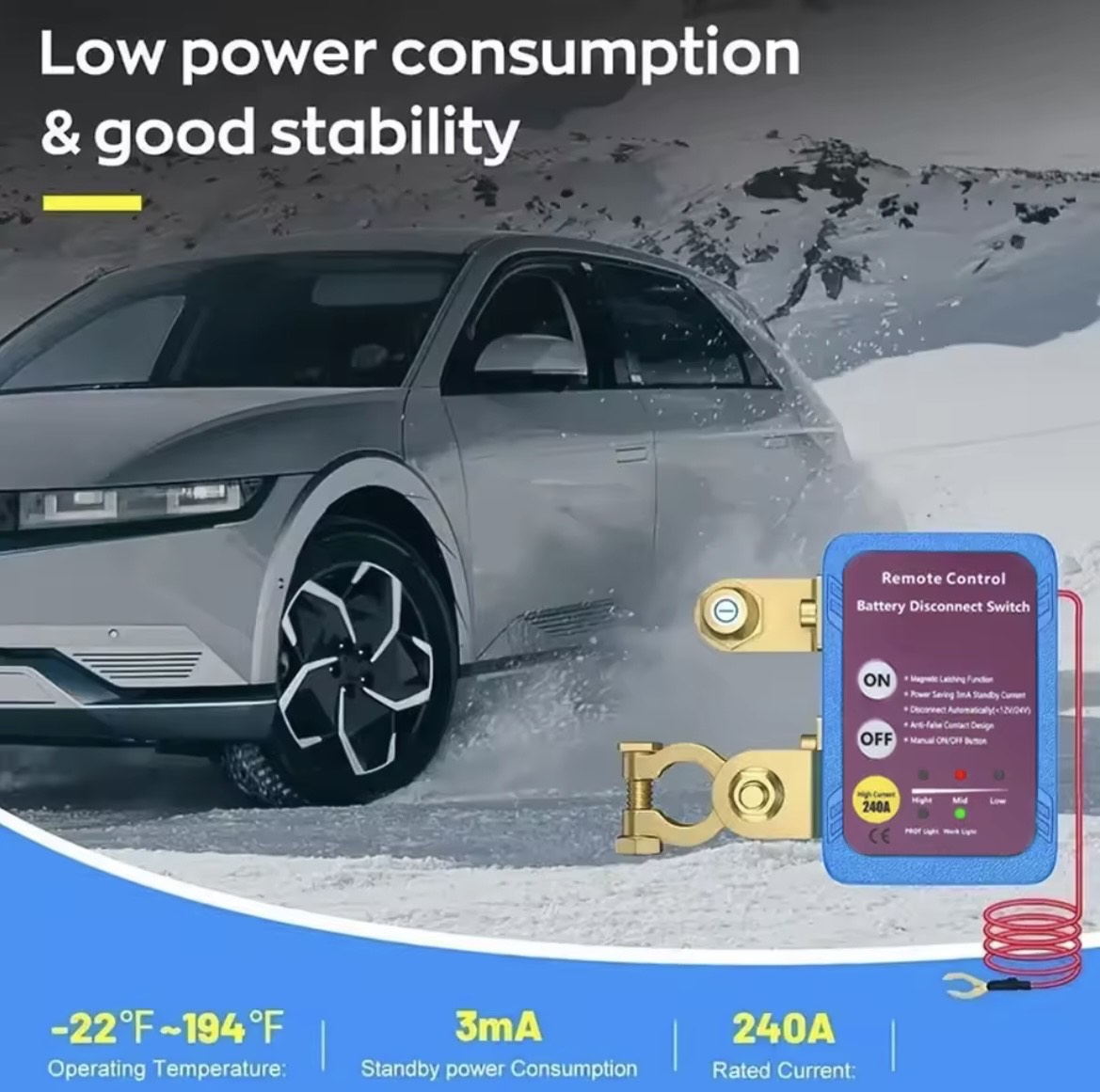 Handles up to 240A — perfect for most 12V/24V vehicles. - Magnetic Latching Function