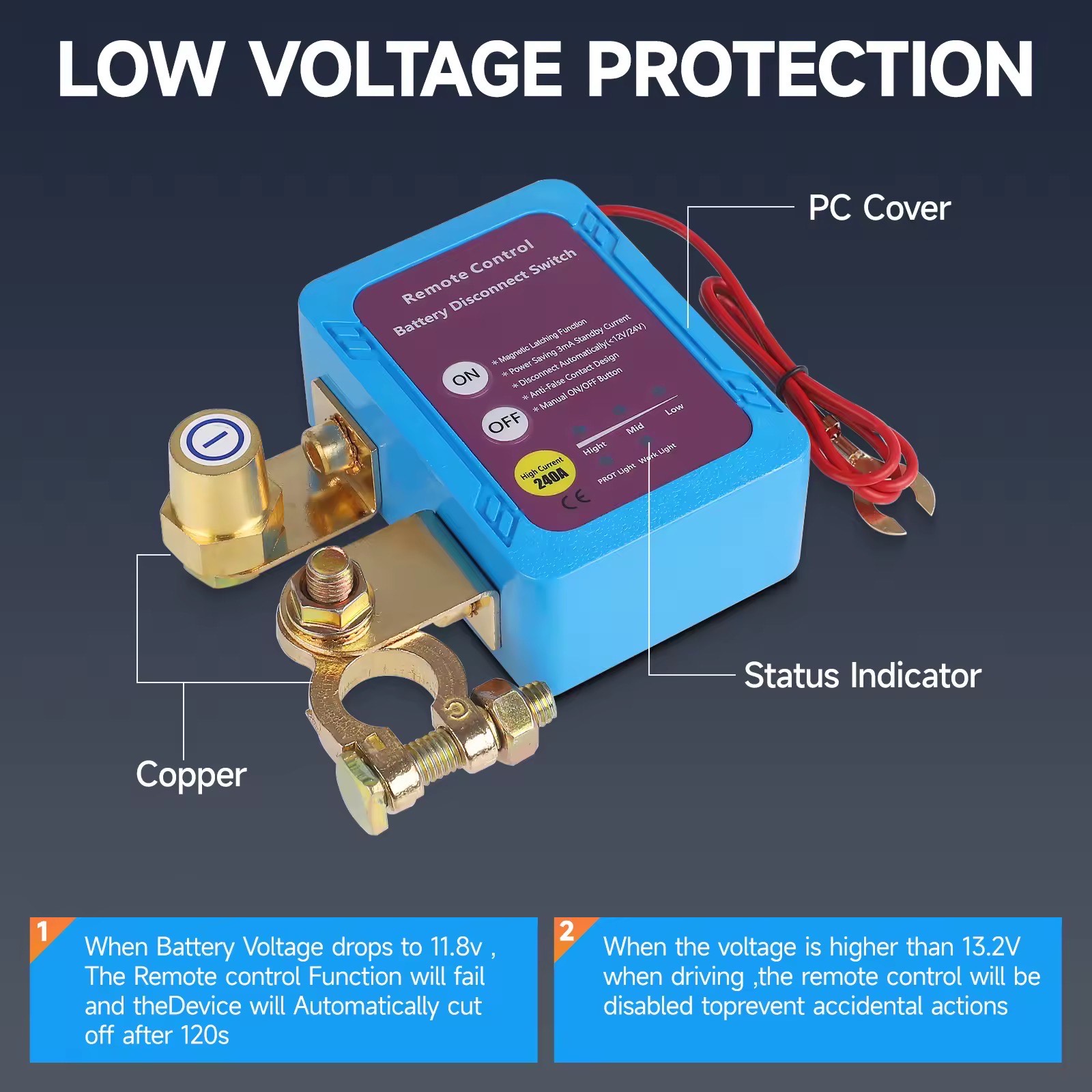 Automatically disconnects when voltage drops below 12V/24V, extending battery life. - High Current Capacity
