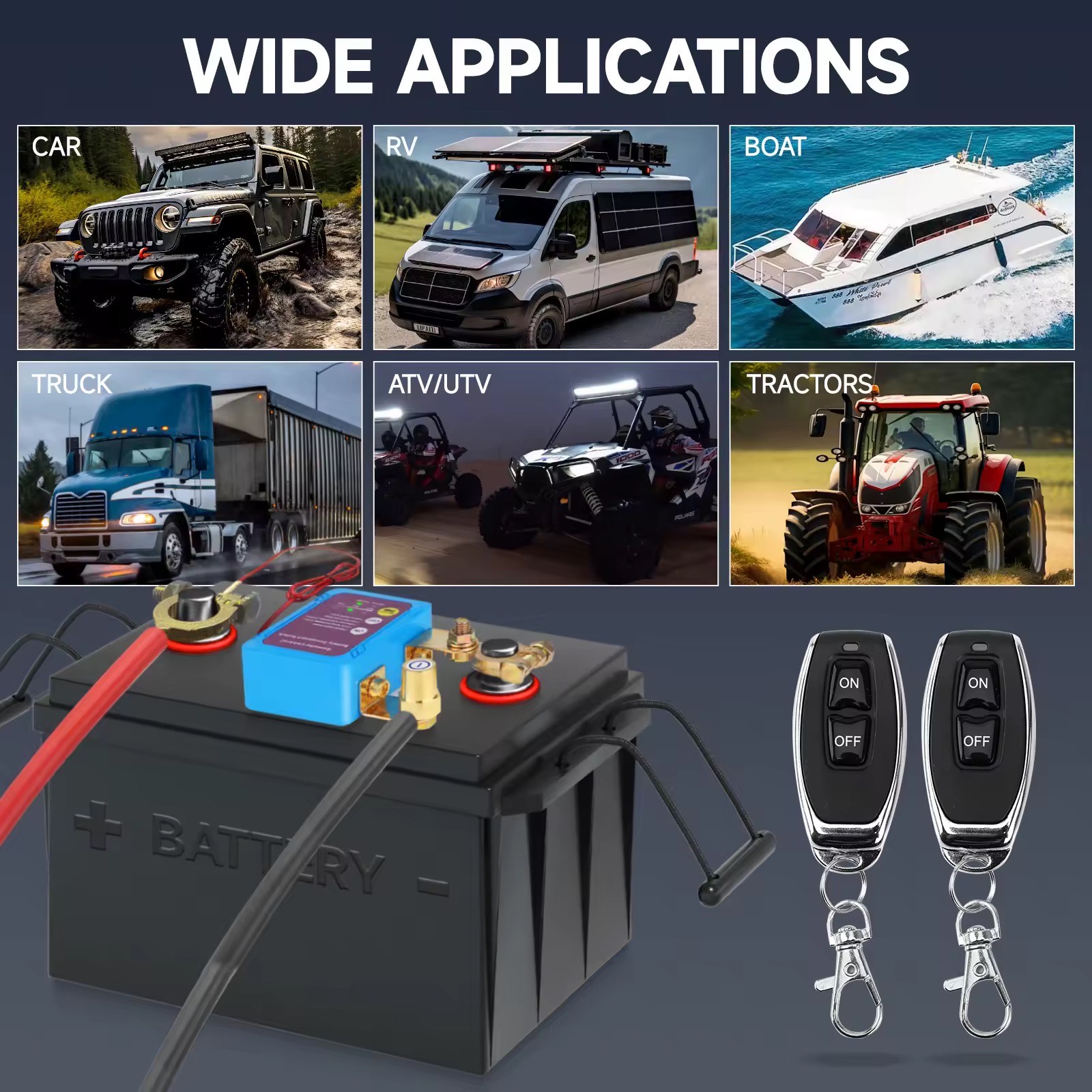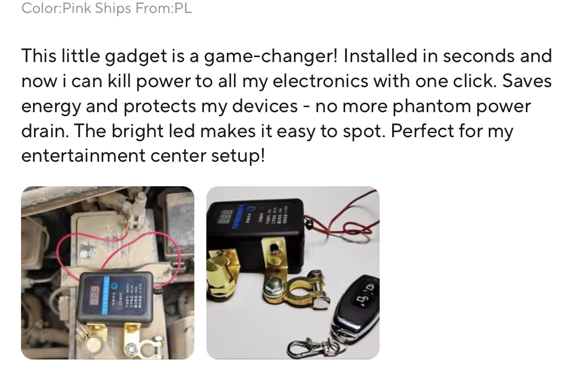 Tired of dead car batteries or unwanted power drain? The Remote Control Battery Disconnect Switch gives you full control over your vehicle’s power with just one click! It’s designed for cars, trucks, RVs, boats, and off-grid systems — providing safety, convenience, and peace of mind.